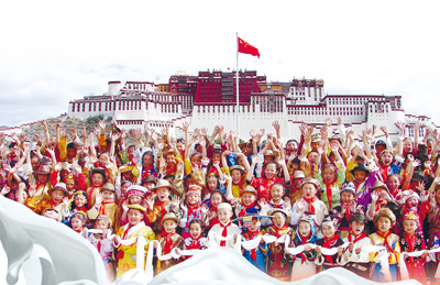 拉萨市第一小学60周年校庆,各族学生身着节日盛装在布达拉宫广场合影留念。旦增西旦 摄