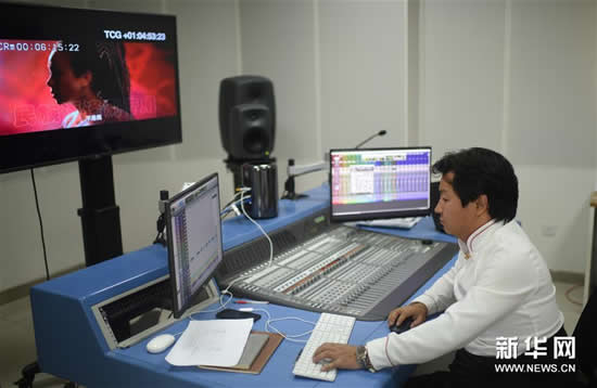 8月31日,青海省民族语影视译制中心技术人员南周加在制作译制电影。