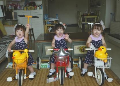三胞胎姐妹花,父母要靠她们的眼神才能区别。