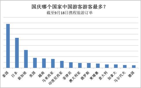 “今年8天长假,携程旅游客户将到达全球近100个国家,每天都将有几千个携程旅游团在各大洲?!毙瘫ǜ嬖ぜ乒熘星锛倨诔鼍秤喂婺=?00万人次。从截至18日的跟团游、自由行订单统计看,国庆游客中,有50%选择的是出境游产品。我国游客最青睐的前十个国家是:泰国、日本、新加坡、美国、越南、马来西亚、印度尼西亚、菲律宾、澳大利亚、俄罗斯。东南亚将成为中国超级黄金周的最大赢家,中国赴韩国旅游降幅最大,预计同比降下降七成左右,国庆赴韩旅游团全面中断。