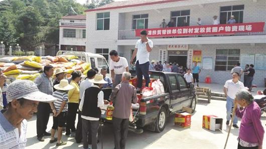 图为:湖北长安建筑股份有限公司向贫困户捐赠爱心物资。