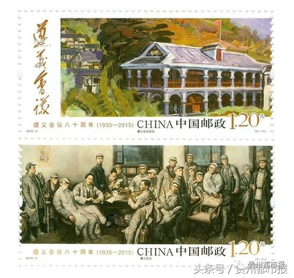 2015年是遵义会议80周年,中国邮政于1月15日发行《遵义会议八十周年》纪念邮票1套2枚,图案内容分别为遵义会议会址、遵义会议。全套邮票面值为2.40元。