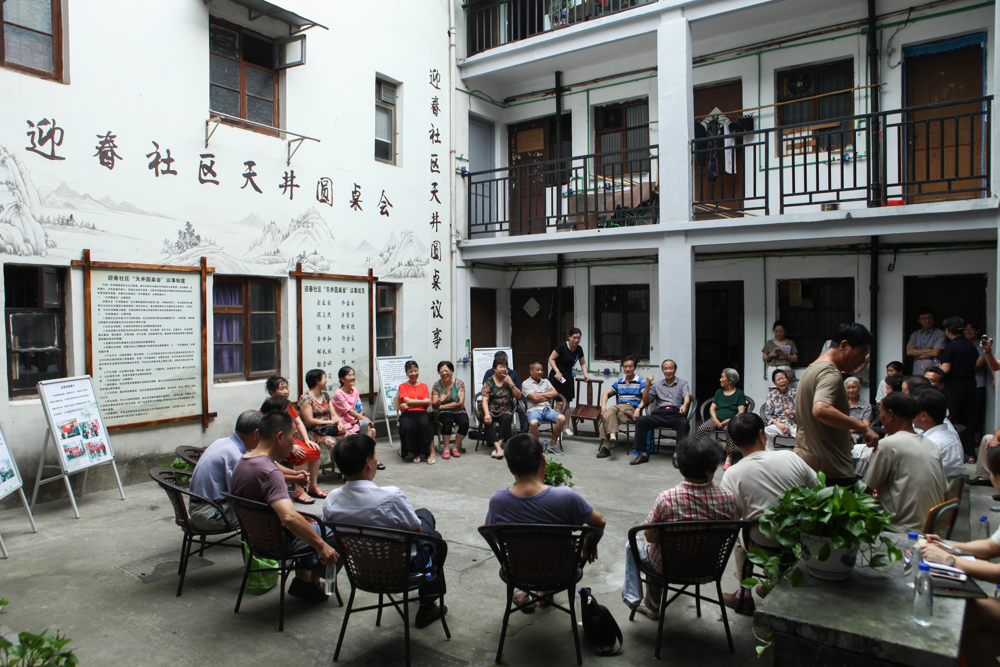 天井圆桌会是浙江杭州桐庐县政协推进基层协商民主,在社区创新协商议事形式之一。近日,天井圆桌会在桐君街道迎春社区朝阳宿舍举行。围绕全国文明城市创建工作,居民们有啥说啥,现场有问有答,协商交流气氛十分热烈。何小华俞谷摄