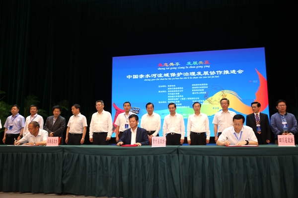云贵川三省政协领导现场签订了《云贵川三省政协助推赤水河流域生态经济发展协作协议书》。按照党中央、国务院《关于全面推行河长制的意见》和《按流域设置环境监管和行政执法机构试点方案》部署,三省政协将切实加强合作,通过联合调研、联合提案、专题报告等形式,助推《赤水河流域生态经济示范区总体规划》编制,争取上升为国家战略;将共同加强赤水河流域生态?;ず突肪持卫?,共同?;こそ嫌紊琳?;助推赤水河流域生态经济发展示范区创建,共同打造中国白酒“金三角”和世界优质白酒生产长廊,共同申报赤水河5A级景区,建设赤水河康养基地,推动流域全域旅游发展;助推赤水河流域脱贫攻坚示范协作,合力打赢脱贫攻坚战;联合推动流域公路、机场、航运综合立体交通体系建设,以交通促发展;助推三省建立全流域、跨区域协作联动机制,实现流域资源整合、抱团发展、民生互惠、共享共赢。