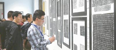 观众在欣赏拓本。本报见习记者 唐芊尔摄/光明图片
