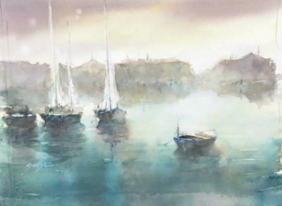 法国艺术家珍妮恩·歌莉芝娅水彩画 《船》
