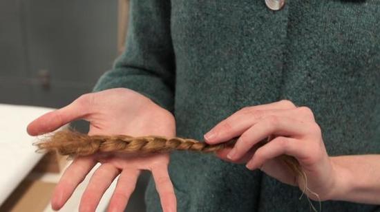 修复师们使用这种辫状的形式来进行分批染色,这样能确保线不会在染缸里胡乱纠缠在一起,导致最后形成一个大结。