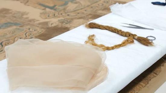 在缝制这一步,修复师们会用到两种不同类型的缝线。修复师Hannah表示,“这种质量非常好的丝线相当地牢固,但也不会太牢固,如果比较紧的力作用于这种丝线上,这些丝线就会自己断掉,所以这样也不会对文物本身造成破坏。所以在缝制文物纺织品时,这被认为是一种更安全的纤维?!?/p>