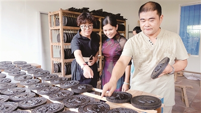 调研组一行来到某茶业公司,听取了该公司采用“公司+农户”打造乡村旅游扶贫的经验?!澳忝堑牟璞昂苡刑厣?,十二生肖、盘王印等元素运用得很有新意?!笨吹蕉谰呙褡逄厣牟璞?,调研组专家表示,旅游产品开发是乡村旅游产业中的重要一环,必须凸显当地特色,才能有足够的吸引力。韦 珺 摄影报道