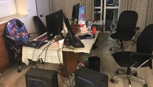 窝藏在居民小区的黑客窝点,像一个小型网吧