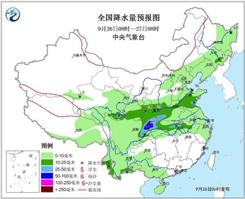 在南方,由于近期华西地区降水较为频繁,江淮等地区也刚刚经历一轮强降雨,已经对水稻、棉花的成熟收晒及油菜播种育苗造成了一定影响。26日至27日,此轮冷空气南下后四川盆地东部、江汉、黄淮、江淮等地出现的大风和强降水,将会导致部分作物倒伏,对秋收作物收获晾晒、油菜播种育苗还将带来不利影响。