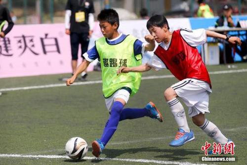 小学生正在进行足球比赛(资料图)。中新社记者 杜洋 摄