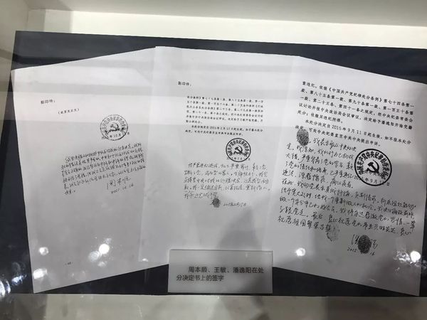 周本顺、王敏、潘逸阳三人在中央纪委处分决定上的签字首次曝光。