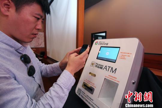 资料图:中国首台比特币ATM机出现在上海张江的一家咖啡店内,吸引不少比特币玩家前来兑换。中新社发 张亨伟 摄