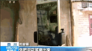 推石磨,考验的是体力和耐力,刘金银喊起了号子给自己加油鼓劲儿。伴着号子声,黄豆被磨成了白花花的浆水,网友们表示很新奇。一边推着石磨,刘金银还一边向大家介绍具体操作方法。