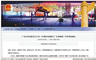 实际上,早在2004年6月,国家广电总局、国家工商总局曾发布过《关于加强影片贴片广告管理的通知》,明确要求影片贴片广告不得占用电影放映时间,电影院要对放映的贴片广告时间予以公告,未经影片版权方同意任何单位不得搭载、删减贴片广告。2009年2月,国家广电总局电影局发布《关于进一步规范电影贴片广告和映前广告管理的通知》,其中提及,影院电影放映存在“广告占用放映时间的问题更为突出,严重损害了消费者的利益,引起了广大观众的强烈反感”现象,并据此重申,“贴片广告、映前广告一律加在《电影片公映许可证》前,并在电影票面上标注的放映时间前放映”。