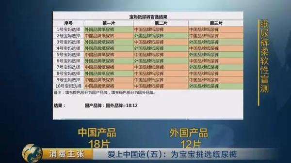 央视财经《消费主张》节目曾测试,让10位妈妈戴上眼罩,单纯用手来抚摸这些纸尿裤,分别挑选出3款自己最满意的产品。其中外国产品12片,中国产品却达到了18片!