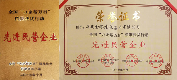 西藏金塔建设集团荣获全国“万企帮万村”精准扶贫行动先进民营企业称号资料图片