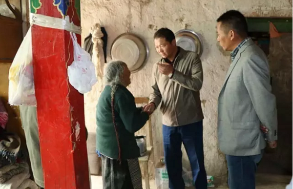扎塔与困难群众亲切交谈、嘘寒问暖,助力脱贫攻坚。资料图片