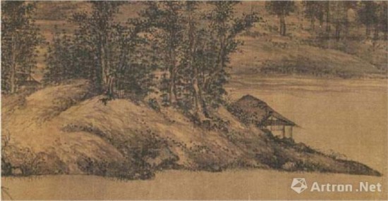 董源(传)《江堤晚景图》中疏松的皴线