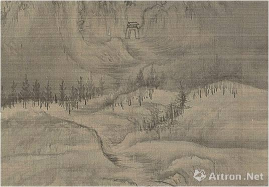 王诜《渔村小雪图》用皴线排叠出的山路野径
