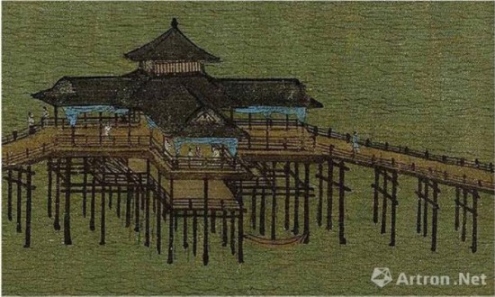 宋人《长桥卧波图》中朱色的长桥