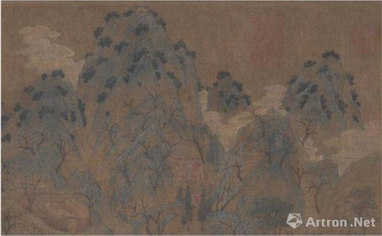 巨然《层岩丛树图》将轮廓线皴染到体面之中