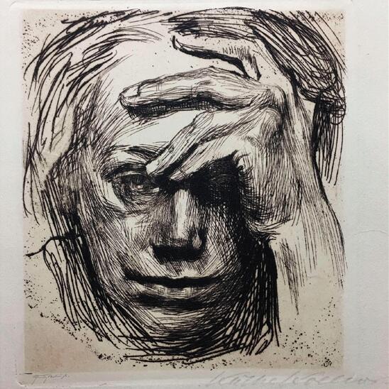 凯特·珂勒惠支 扶额自画像 45×31cm 铜版蚀刻、直刻 1910年