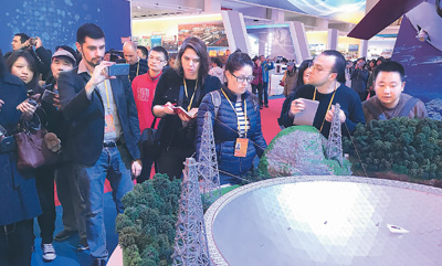 各国记者参观“砥砺奋进的五年”大型成就展。