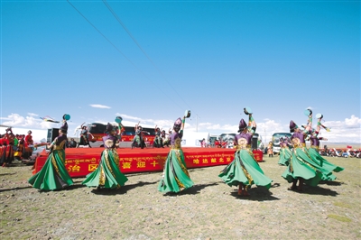 为迎接党的十九大胜利召开,9月27日至10月10日,自治区“喜迎十九大·哈达献北京”巡回演出团先后赴那曲、山南、日喀则、林芝演出。演员们把党和政府的声音传递到基层,把祝福和吉祥带给当地百姓,受到了各族干部群众的热烈欢迎。