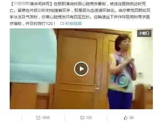 最近在微博上,一位女士在演讲过程中突发心脏病,被送往医院后死亡,其实在这短短2分钟的视频中,心脏发出了数次“警报”,只是都被忽略了。