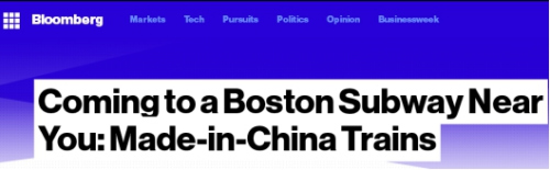 当时,彭博社就发表了一篇题为《中国制造的列车即将成为波士顿地铁,来到你身边》的文章。文章称,中国与波士顿交通管理局签订了5.67亿美元的订单,负责提供整个城市的地铁车辆。这也是中国公司在美国拿下的第一笔列车订单。