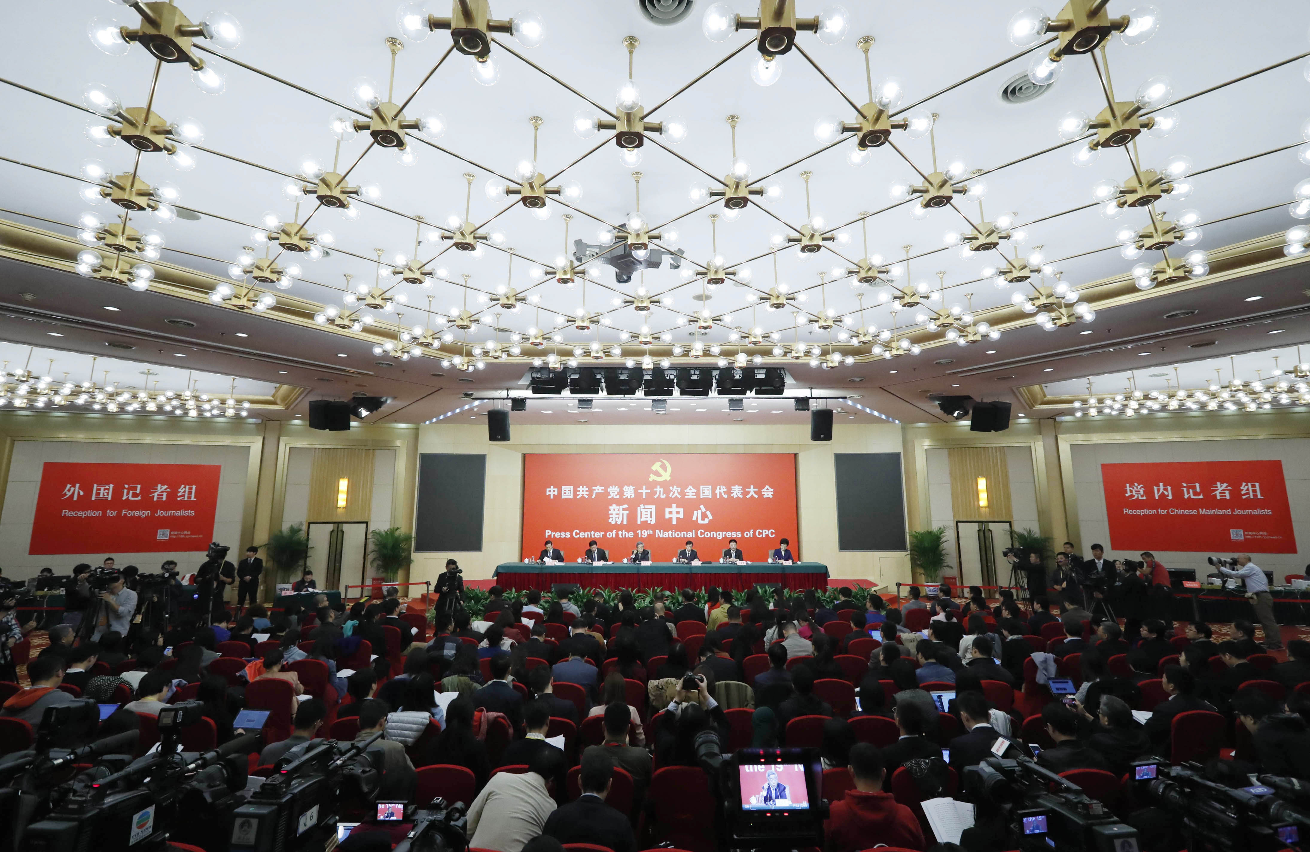 10月22日,中国共产党第十九次全国代表大会新闻中心举行记者招待会,请教育部党组书记、部长陈宝生,民政部党组书记、部长黄树贤,人力资源社会保障部党组书记、部长尹蔚民,住房城乡建设部党组书记、部长王蒙徽,国家卫生计生委党组书记、主任李斌介绍满足人民新期待,保障改善民生有关情况,并回答记者提问。