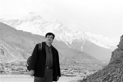 2015年4月琚宜文教授在尼泊尔喜马拉雅进行盆地地质调查与采样