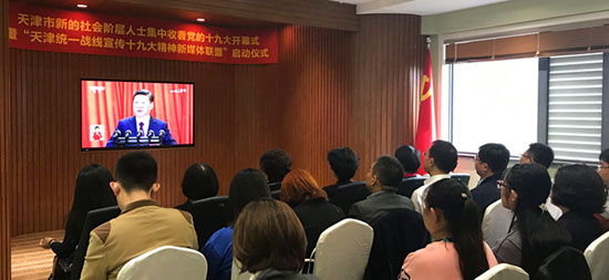 10月18日上午,天津市委统战部组织新的社会阶层人士集中收看党的十九大开幕会暨成立“天津统一战线宣传十九大精神新媒体联盟”。