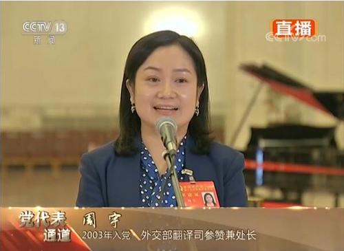 十九大报告提出,中国要以更加自信的姿态走向世界,在今天的党代表通道上,来自外交部翻译司的党代表周宇,与现场的中外记者分享了她的工作经历和感受。