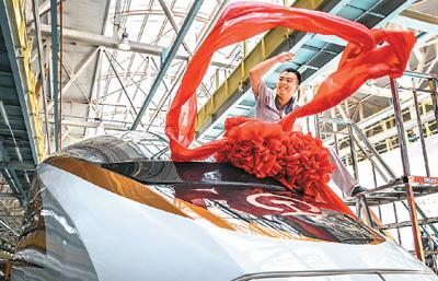 6月25日,中国标准动车组命名在北京举行。由中国铁路总公司牵头组织研制、具有完全自主知识产权、达到世界先进水平的中国标准动车组被命名为“复兴号”。 本报记者 史家民摄