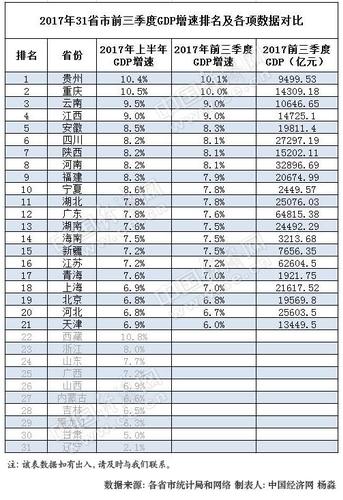 2017年前三季度31省区GDP增速排行榜。(持续更新......)