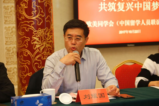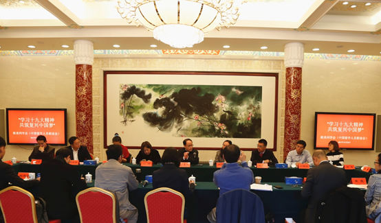 10月22日下午,欧美同学会(中国留学人员联谊会)在京举行留学人员学习十九大精神座谈会。来自北京、山东、山西、河北、河南等地留学人员代表及“千人计划”专家畅谈学习十九大报告的感想体会。欧美同学会党组书记、秘书长王丕君主持会议并讲话。