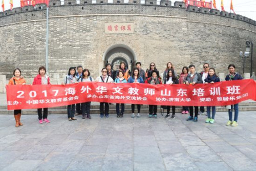 中国侨网10月27日电 据中国华文教育基金会网站消息,近日,由国务院侨办文化司和中国华文教育基金会联合主办,山东省人民政府侨务办公室承办,雅居乐地产控股有限公司资助的“2017海外华文教师山东培训班”在济南大学成功举办。来自泰国的19位华文教师开启了为期十天的汉文化之旅。