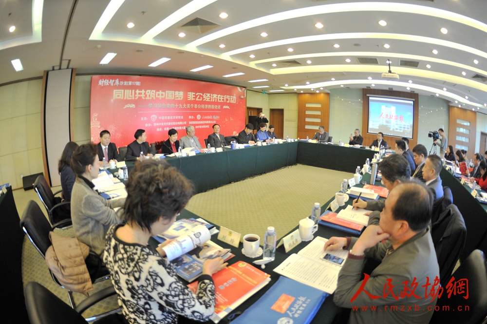 人民政协网北京10月29日电 深入学习贯彻党的十九大精神已经成为社会各界的首要政治任务。10月29日,由中国民营经济研究会主办,人民政协报财经周刊承办,主题为“同心共筑中国梦 非公经济在行动——学习领会党的十九大关于非公经济的新论述”的第17期财经智库沙龙在京举办。多位全国政协委员指出,随着中国特色社会主义进入新时代,新的历史方位既为民营经济带来空前发展机遇,也带来新的责任使命。今后,民营企业应借助全社会呼唤企业家精神的东风,以新姿态、新作为,为增强中国经济活力和后劲、实现“两个一百年”奋斗目标做出新贡献。