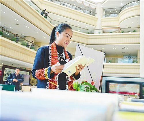 “大家好,我是佤族杨娜。”清脆的声音从党代表通道传来,记者看到了这位皮肤黝黑、身穿绚丽佤族服装的代表。她是党的十九大代表、云南文化工作者杨娜。她来自歌曲《阿佤人民唱新歌》的诞生地云南普洱西盟佤族自治县。西盟县保存了独具魅力的人文风俗和原生态的自然环境。杨娜代表从事民族文化工作14年,走遍了西盟佤山的村村寨寨,目的就是把佤族文化?;ぁ⒋?、发展好。她参与创作的中国佤族原生态歌舞《佤部落》2014年走进国家大剧院,并在全国十多个大中城市演出,得到了观众一致好评。