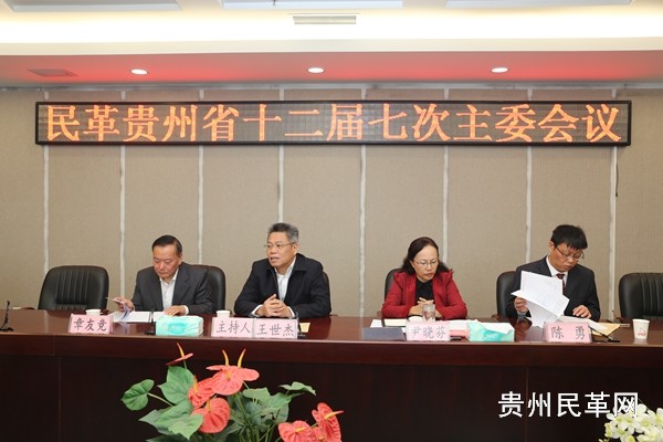 10月24日下午,民革贵州省委会召开十二届七次主委会议,专题学习贯彻中共十九大和习近平总书记重要讲话精神。贵州省人大常委会副主任、民革贵州省委会主委王世杰主持会议。民革贵州省委会副主委尹晓芬、章友竞、陈勇、黄东兵、张玲、陈前林,秘书长邓文淼出席会议。