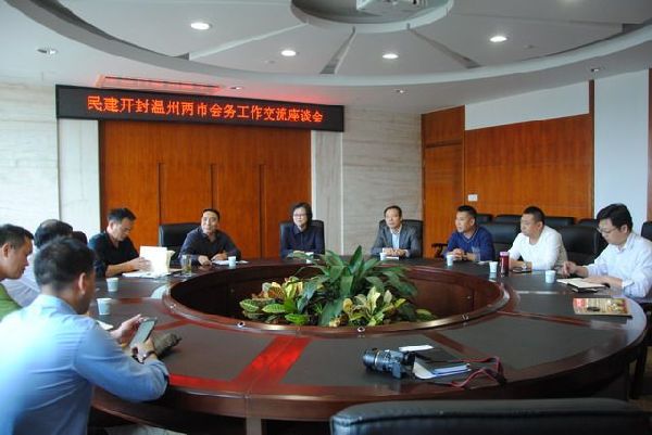 10月20日上午,民建开封市委主委高晓阳率队一行五人在温州市行政中心三号楼709室与民建温州市委进行会务交流座谈。温州市人大常委会副主任、民建温州市委主委徐育斐,民建温州市委副主委陈建民,潘广军,民建会员企业家林浩、陈正远等参加交流。座谈会由徐育斐主持。