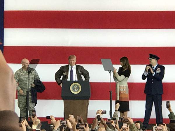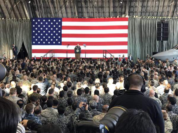 特朗普在横田美军基地发表演讲(蒋丰、吕鹏摄)