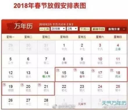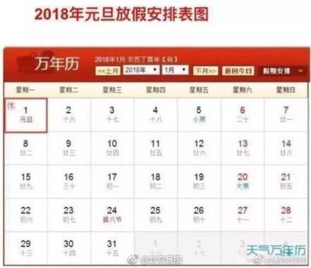 2018年元旦放假3天,其中2017年12月30日至2018年1月1日放假调休,2018年1月2日(星期二)正常上班。2018年春节是2月16日,星期五。根据规定,春节法定放假时间是初一到初三。调休7天。2018年清明节是4月5日,星期四。2018年清明放假安排:4月5日(清明节)-4月7日(星期六),共放假3天,4月8日(星期日),正常上班。2018年4月29日至5月1日放假,共3天,4月28日周六上班,5月1日(星期二)为五一国际劳动节法定节日。2018年端午节是6月18日星期一。2018年端午节放假安排:6月16日-6月18日,共放假3天。2018年中秋节放假安排:2018年9月22日-9月24日,共放假3天。其中,中秋节为9月24日,星期一。2018年10月1日-10月7日,共放假7天。以上就是2018年放假安排时间表,总共有7个放假节日。(via.天气万年历)