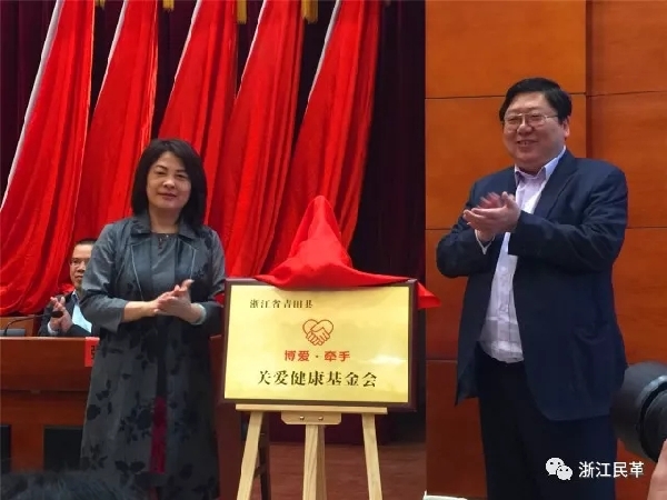 启动仪式上,戚永远和青田县政府副县长张如一为省委会“博爱·牵手”医疗服务基地揭牌,吴晶和“浙江青田之家”公益基金会理事、中静实业(集团)有限公司董事长高央为青田县“博爱·牵手”关爱健康基金会揭牌。该基金会成立后,将对民革“博爱·牵手”基地开展社会服务工作提供持续支持。