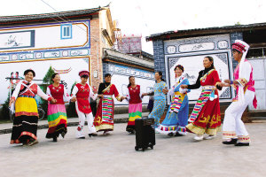 绕村一圈,你会发现这里无处不体现多民族特色:那造型奇特的凉亭,有着藏式的喇嘛塔顶、汉式的重檐、傣式的栏杆,俨然一个建筑版“全家?!保淮迥诘谋局髅?,除了供奉白族的本主,还有彝族的牛头,外面还飘着藏族的经幡;民族文化长廊里,傣族的孔雀、藏族的吉祥宝瓶、彝族的火把等文化符号随处可见。