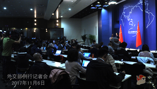 问:第一,关于朝鲜半岛局势,安倍首相刚刚在与特朗普总统共见记者时表示,中国需要在半岛核问题上发挥更重要的作用。中方对此有何评论?第二,特朗普总统此次访问日本,日本政府尽全力迎接特朗普总统。中方怎么看?