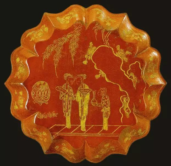 朱漆戗金菱花式人物花卉纹奁 武进南宋墓出土 常州博物馆藏